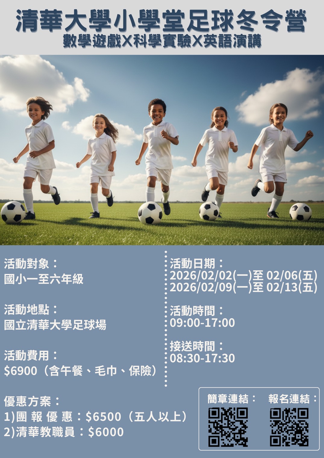 【寒假營隊招生】2026年國立清華大學運動營隊足球、羽球冬令營
